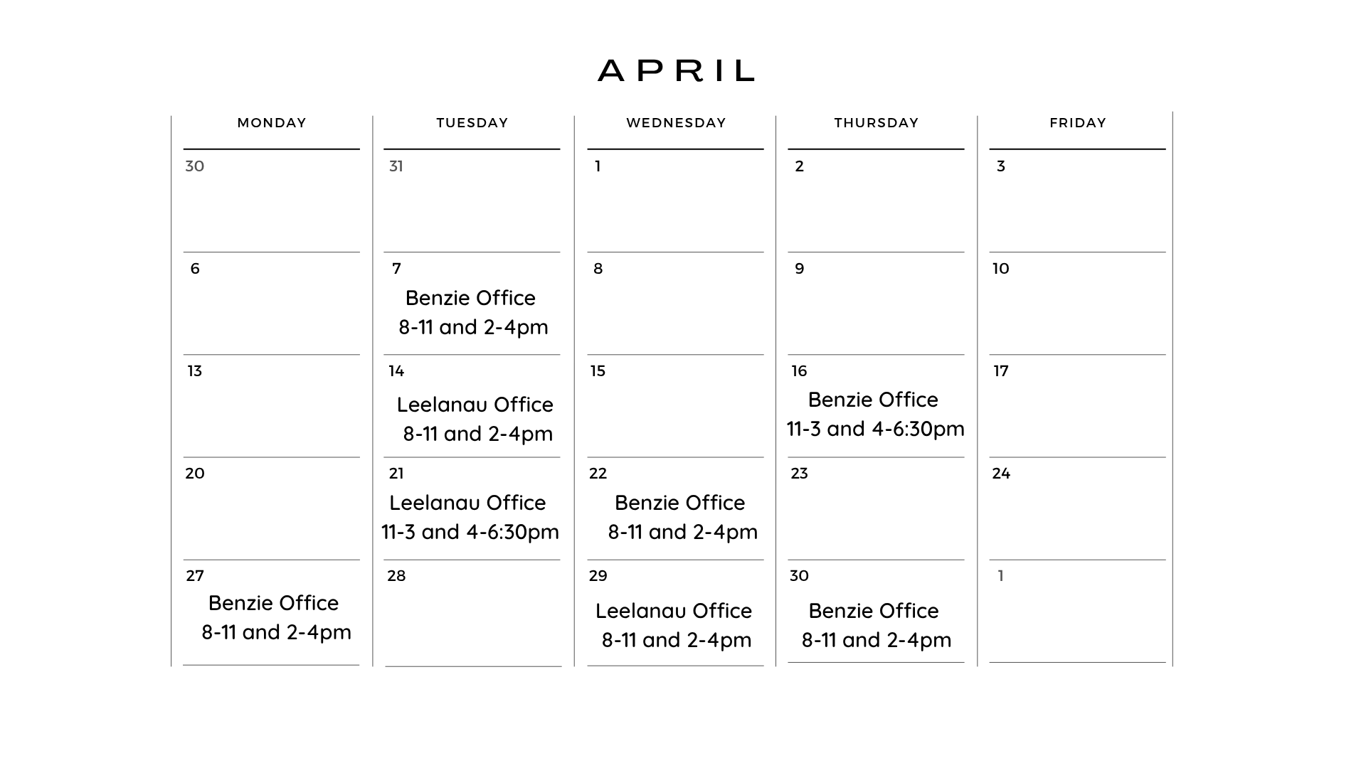 We will be happy to bill your insurance. We currently accept most commercial insurances. Call 231-882-4409 ext. 3. to check eligibility or schedule an appointment.